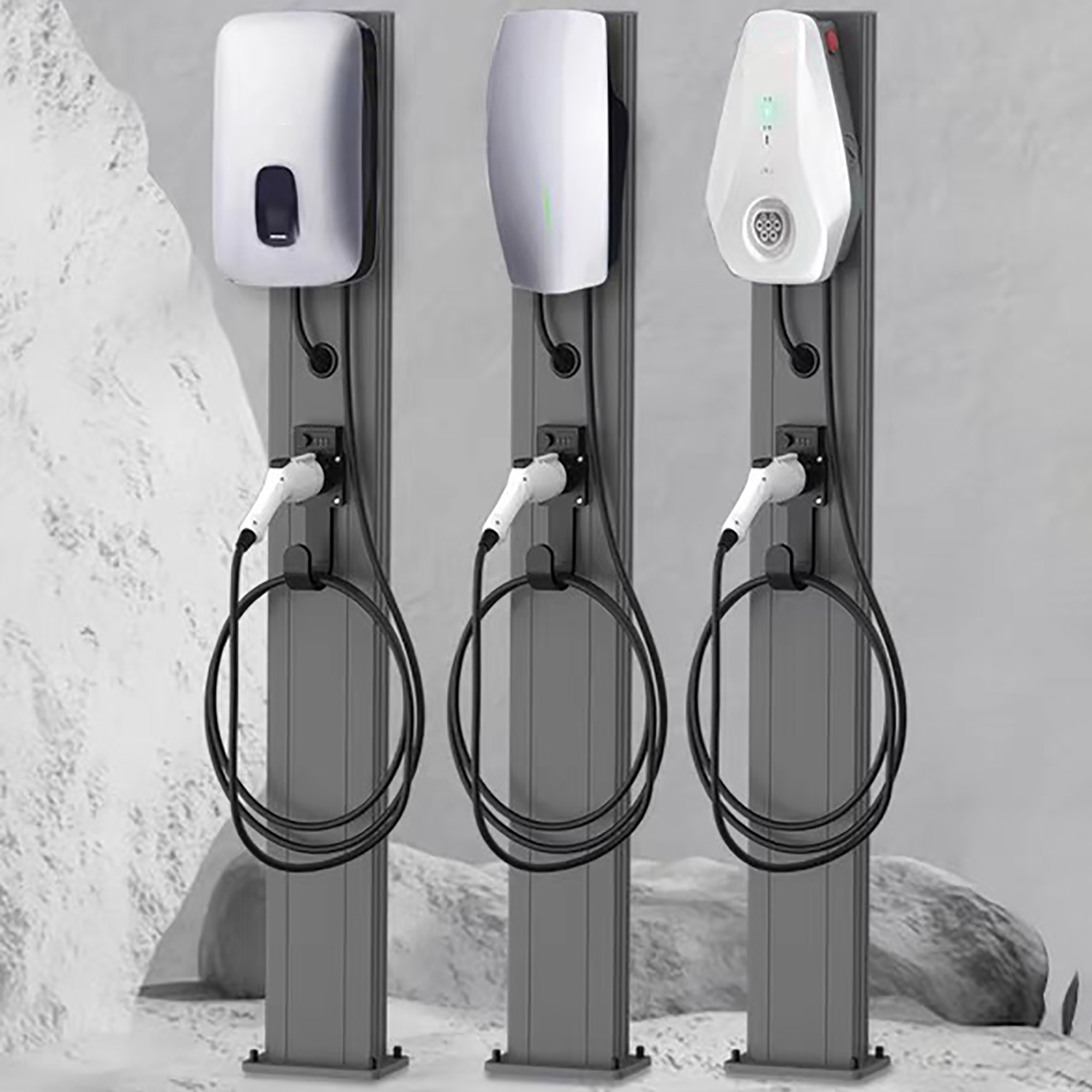 【Usage Scenario】The electric vehicle charging stand dock is suitable for parking lots, garages, backyards, and other places. Compared with wall mounted charging piles, this floor standing charging pile column is more flexible and can be installed in lanes or parking spaces, making it very suitable for parking lots where wall mounted installation is not available